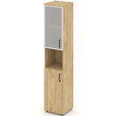 Шкаф высокий узкий правый (1 низкий фасад ЛДСП + 1 средний фасад стекло прозрачное) ЗС ЛХДФ Сити Офис Вуд, цвет тиквуд светлый