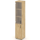 Шкаф высокий узкий правый (1 низкий фасад ЛДСП + 1 низкий фасад стекло прозрачное) ЗС ЛДСП Сити Офис Вуд, цвет тиквуд светлый