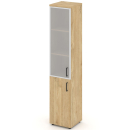 Шкаф высокий узкий правый (1 низкий фасад ЛДСП + 1 низкий фасад стекло прозрачное) ЗС ЛХДФ Сити Офис Вуд, цвет тиквуд светлый