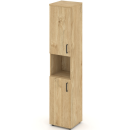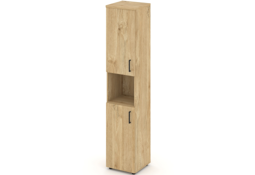 Шкаф высокий узкий левый (1 низкий фасад ЛДСП + 1 средний фасад ЛДСП) ЗС ЛДСП Сити Офис Вуд, цвет тиквуд светлый