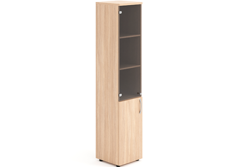 Шкаф высокий узкий правый (3 полки под стеклом) Мотиви, цвет светлый дуб