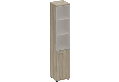 Шкаф высокий узкий правый (3 полки под стеклом в алюминиевой рамке) Авилла, цвет вяз либерти