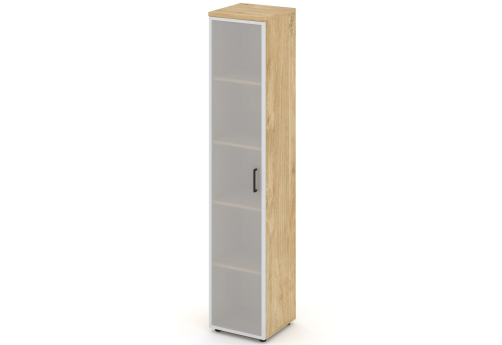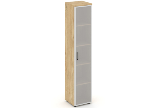 Шкаф высокий узкий универсальный (1 высокий фасад стекло сатин в раме) ЗС ЛХДФ Сити Офис Вуд, цвет тиквуд светлый