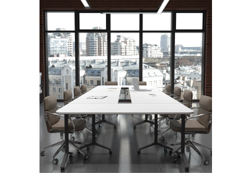 Практичные современные мобильные складные столы-трансформеры - удобное и эргономичное хранение в офисе. Подойдут для переговорных и учебных комнат, аудиторий.
