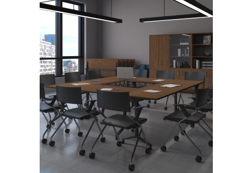 Практичные современные мобильные складные столы-трансформеры - удобное и эргономичное хранение в офисе. Подойдут для переговорных и учебных комнат, аудиторий.