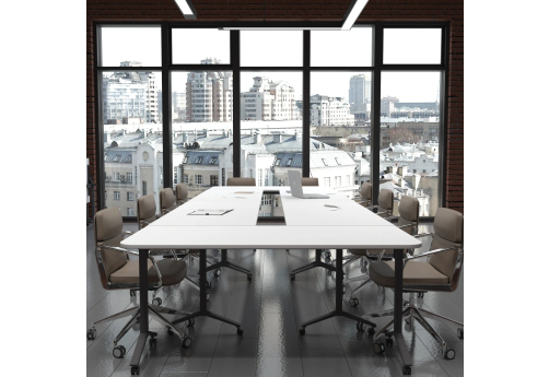 Практичные современные мобильные складные столы-трансформеры - удобное и эргономичное хранение в офисе. Подойдут для переговорных и учебных комнат, аудиторий.