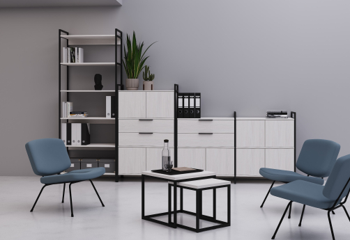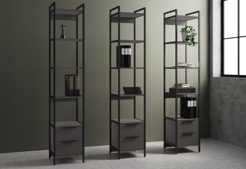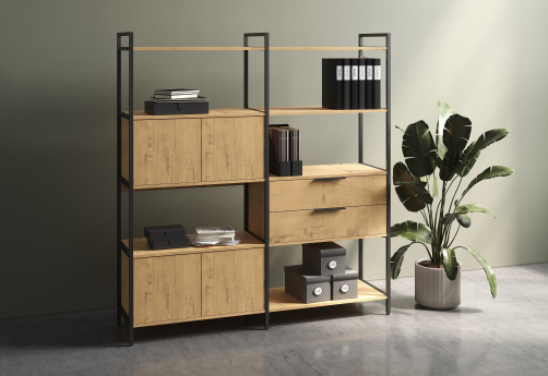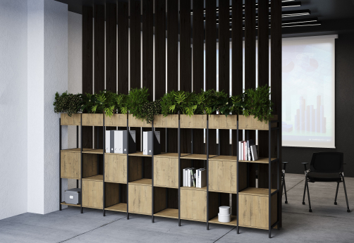 Дизайнерский стеллаж в стиле лофт станет отличным акцентом интерьера вашего офиса благодаря стильному металлическому каркасу. Стеллаж также может быть использован в различных домашних помещениях. Простота в уходе: гладкие поверхности легко очищаются от пыли и загрязнений.