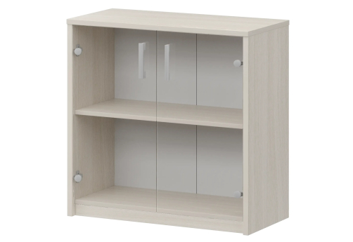 Стеллаж низкий с прозрачным стеклом Аксима, цвет ясень шимо