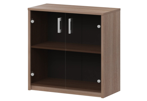 Стеллаж низкий с тонированным стеклом Аксима, цвет темный шимо