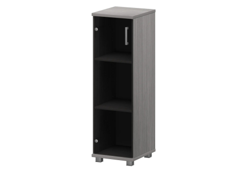 Стеллаж низкий узкий закрытый со стеклянным фасадом Сантана, цвет баттл + серый