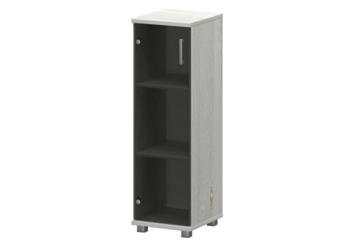Стеллаж низкий узкий закрытый со стеклянным фасадом Сантана, цвет сосна винтер + серый