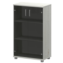 Стеллаж низкий узкий закрытый со стеклянным фасадом Сантана, цвет баттл + серый