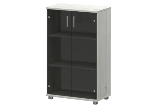 Стеллаж низкий закрытый со стеклянными фасадами Сантана, цвет сосна винтер + серый