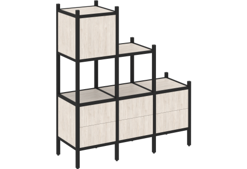 Стеллаж прямой вариант 2 Европа, цвет тиквуд светлый + черный