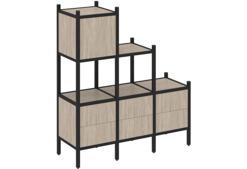Стеллаж прямой вариант 2 Европа, цвет тиквуд светлый + черный