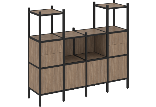 Стеллаж прямой вариант 2 Европа, цвет тиквуд светлый + черный