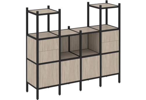 Стеллаж прямой вариант 2 Европа, цвет тиквуд светлый + черный