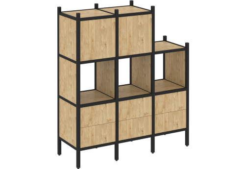 Стеллаж прямой вариант 2 Европа, цвет тиквуд светлый + черный