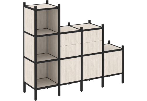 Стеллаж прямой вариант 1 Европа, цвет тиквуд светлый + черный