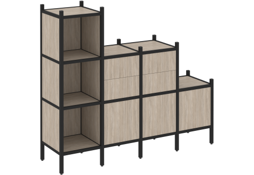 Стеллаж прямой вариант 2 Европа, цвет тиквуд светлый + черный