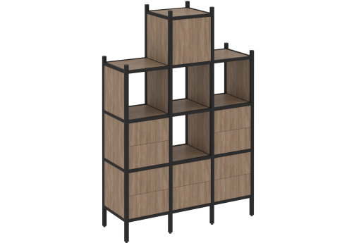 Стеллаж прямой вариант 2 Европа, цвет тиквуд светлый + черный
