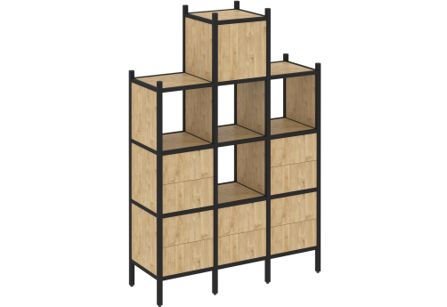 Стеллаж прямой вариант 8 Европа, цвет тиквуд светлый + черный