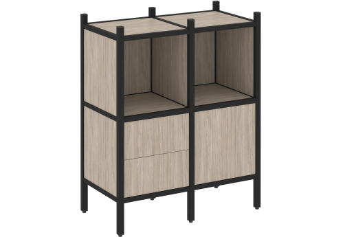 Стеллаж прямой вариант 2 Европа, цвет тиквуд светлый + черный
