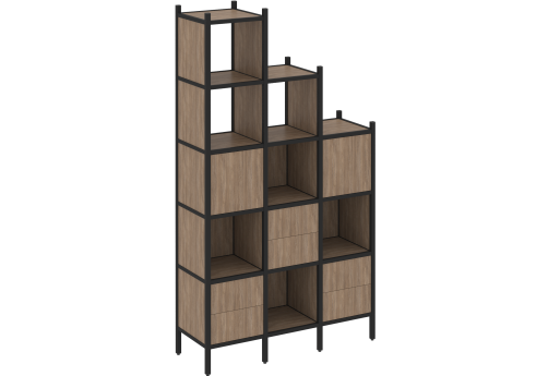 Стеллаж прямой вариант 2 Европа, цвет тиквуд светлый + черный