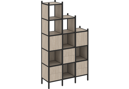 Стеллаж прямой вариант 2 Европа, цвет тиквуд светлый + черный