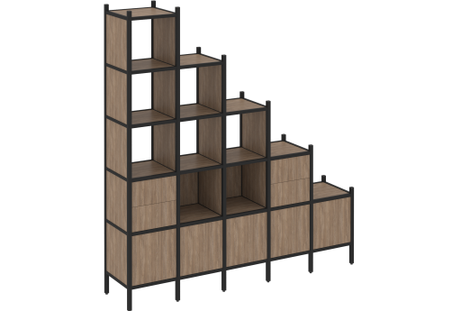 Стеллаж прямой вариант 2 Европа, цвет тиквуд светлый + черный