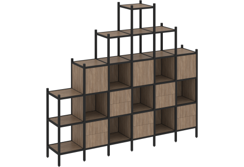 Стеллаж прямой вариант 2 Европа, цвет тиквуд светлый + черный