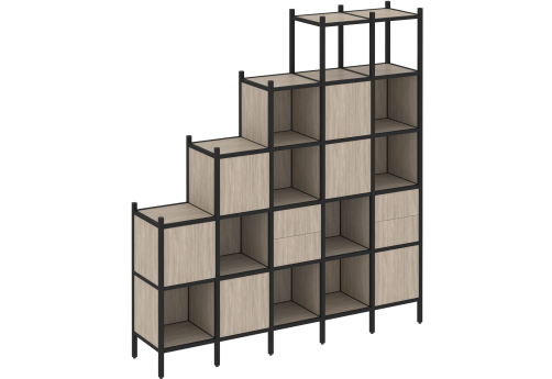 Стеллаж прямой вариант 2 Европа, цвет тиквуд светлый + черный