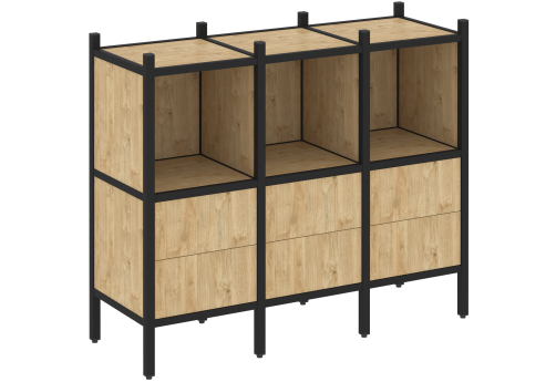 Стеллаж прямой вариант 2 Европа, цвет тиквуд светлый + черный