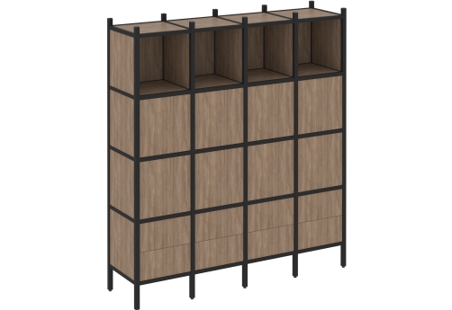 Стеллаж прямой вариант 6 Европа, цвет тиквуд светлый + черный