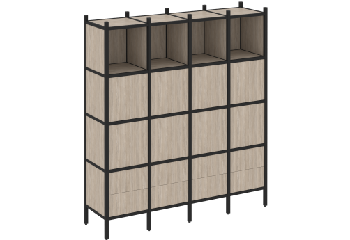 Стеллаж прямой вариант 2 Европа, цвет тиквуд светлый + черный