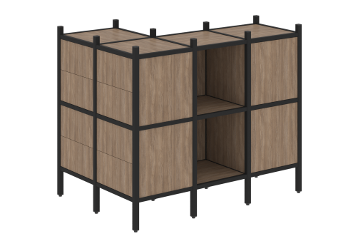 Стеллаж угловой внутренний вариант 37 Европа, цвет тиквуд светлый + черный