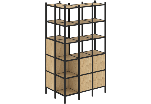 Стеллаж угловой внутренний вариант 37 Европа, цвет тиквуд светлый + черный