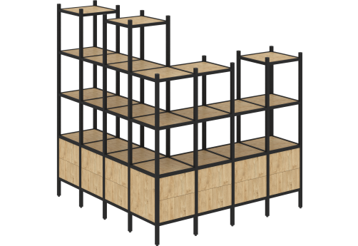 Стеллаж угловой внутренний вариант 37 Европа, цвет тиквуд светлый + черный