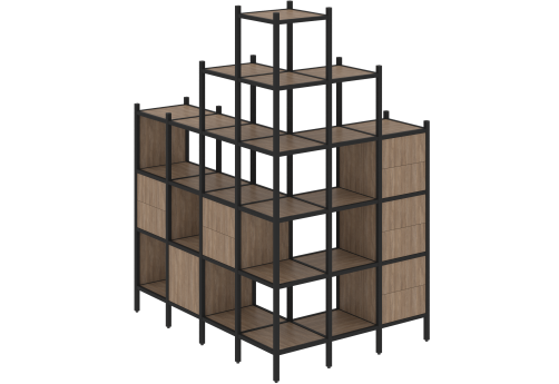 Стеллаж угловой внутренний вариант 37 Европа, цвет тиквуд светлый + черный