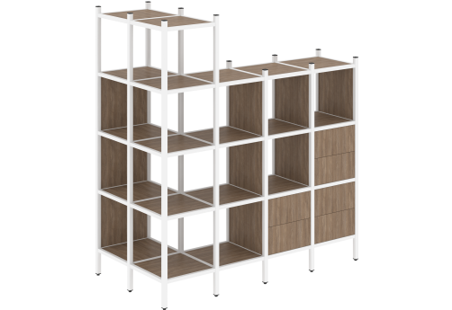 Стеллаж угловой внутренний вариант 37 Европа, цвет тиквуд светлый + белый