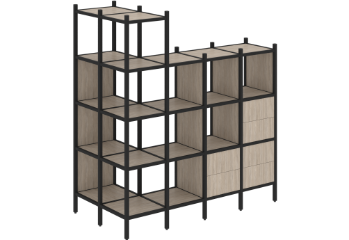 Стеллаж угловой внутренний вариант 37 Европа, цвет денвер светлый + черный