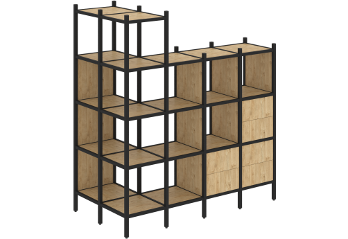 Стеллаж угловой внешний вариант 57 Европа, цвет тиквуд светлый + черный