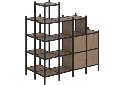 Стеллаж угловой внутренний вариант 37 Европа, цвет тиквуд светлый + черный