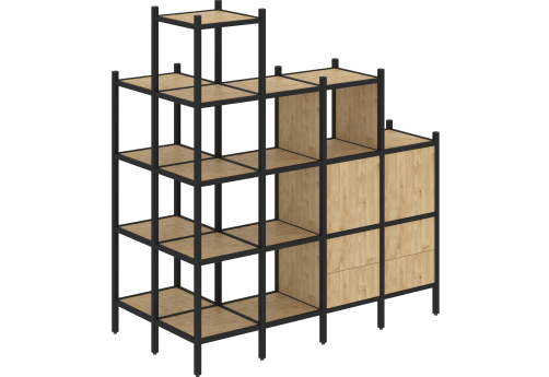 Стеллаж угловой внутренний вариант 37 Европа, цвет тиквуд светлый + черный