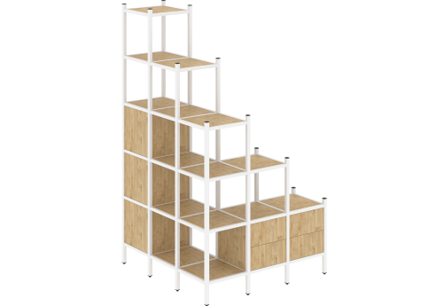 Стеллаж угловой внешний вариант 51 Европа, цвет тиквуд светлый + белый