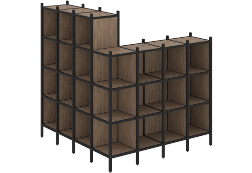 Стеллаж угловой внутренний вариант 37 Европа, цвет тиквуд светлый + черный