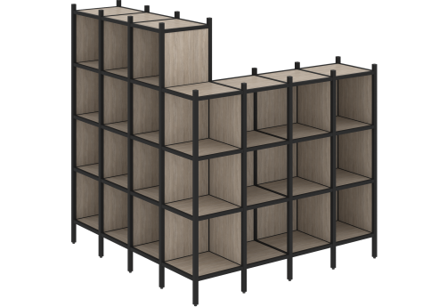 Стеллаж угловой внутренний вариант 37 Европа, цвет тиквуд светлый + черный