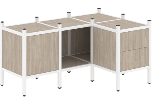 Стеллаж угловой внутренний вариант 37 Европа, цвет тиквуд светлый + белый