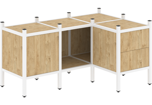 Стеллаж угловой внутренний вариант 37 Европа, цвет тиквуд светлый + белый