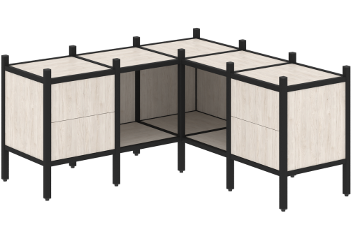 Рабочая станция на 6 мест (углы прямые) Валетта, цвет серый камень